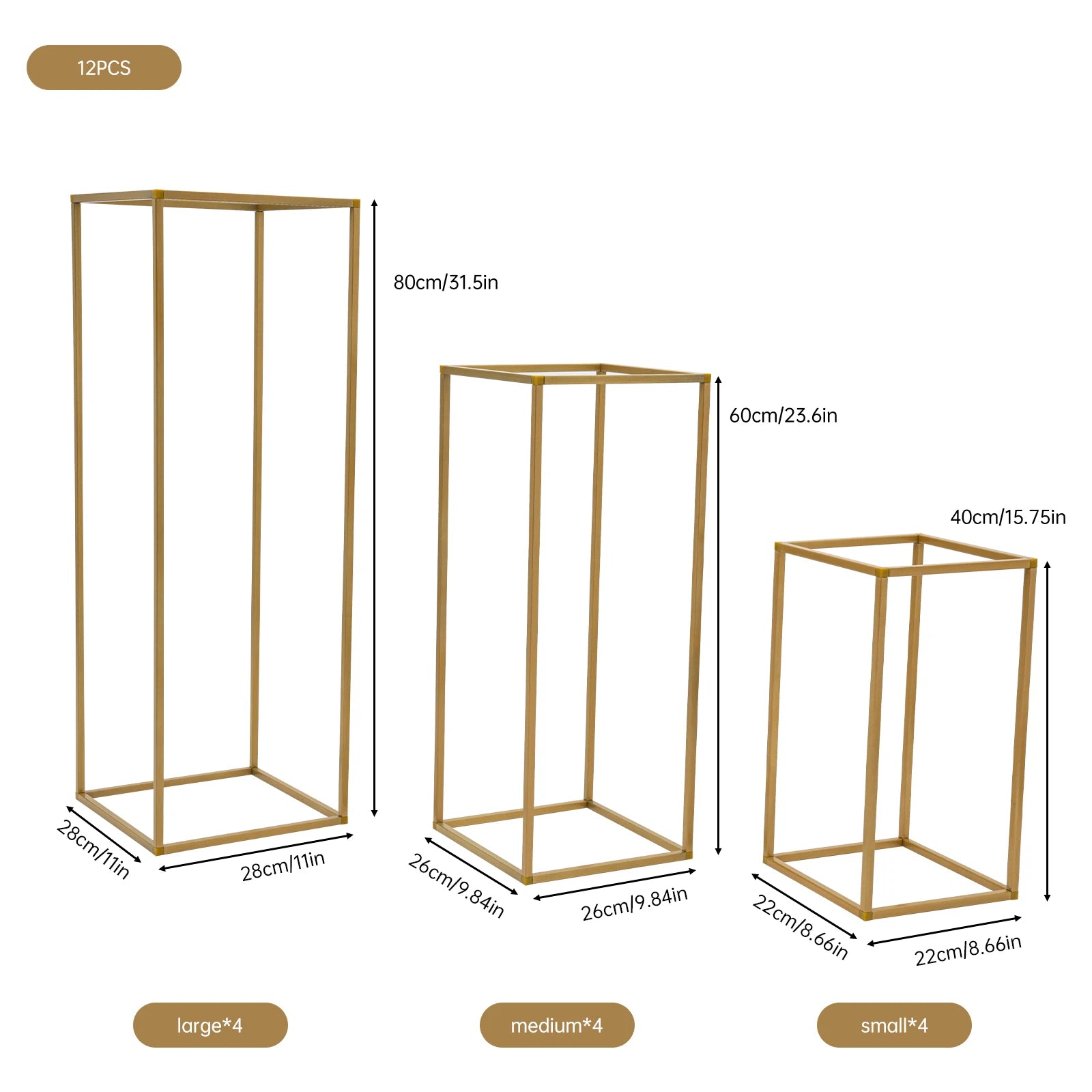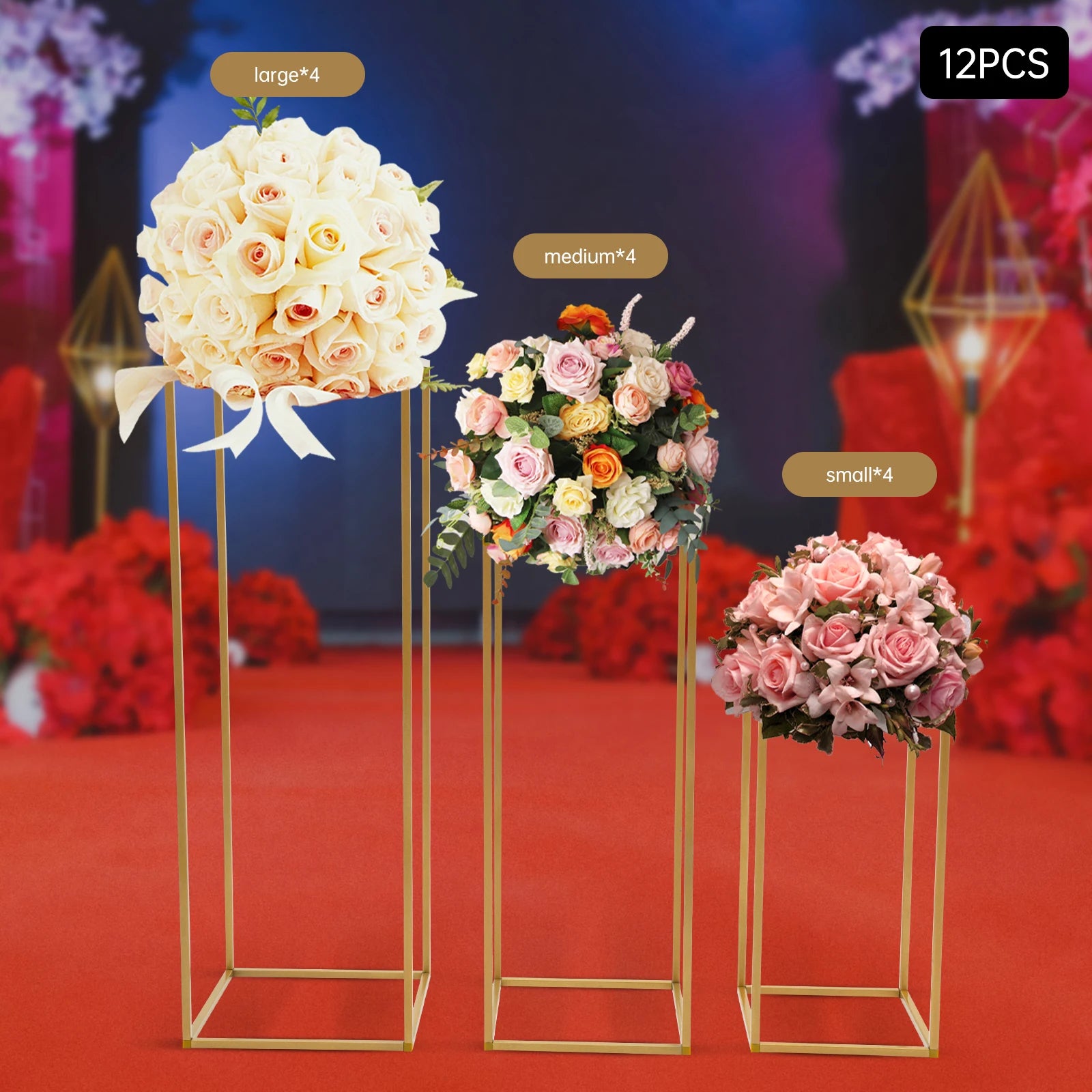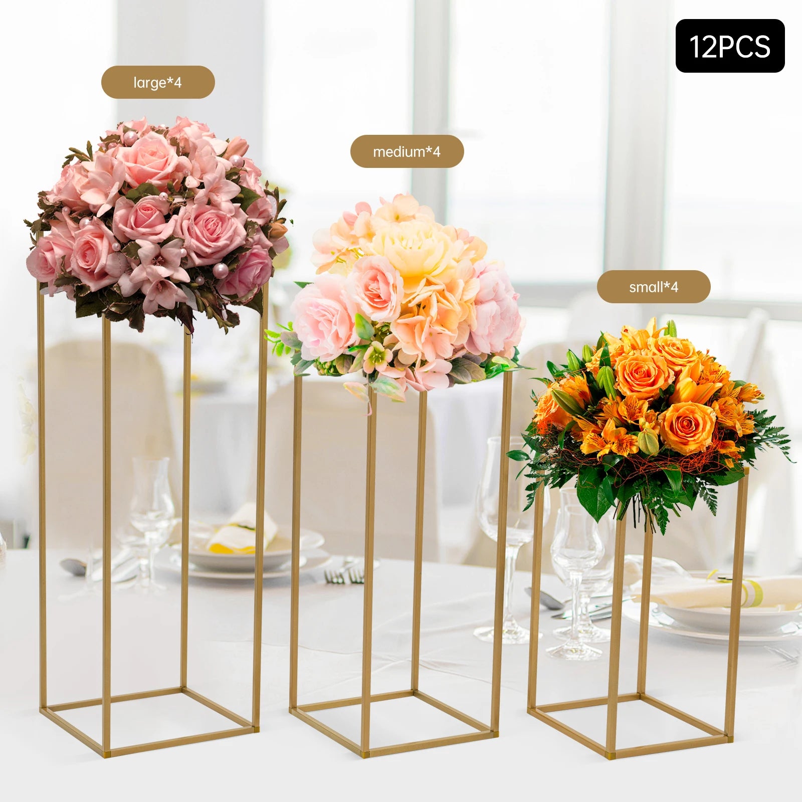 12 PCS Metal Flower Stand, Wedding Centerpieces, Pillar Rectangular Geometric Flower Rack for Event Party Decor