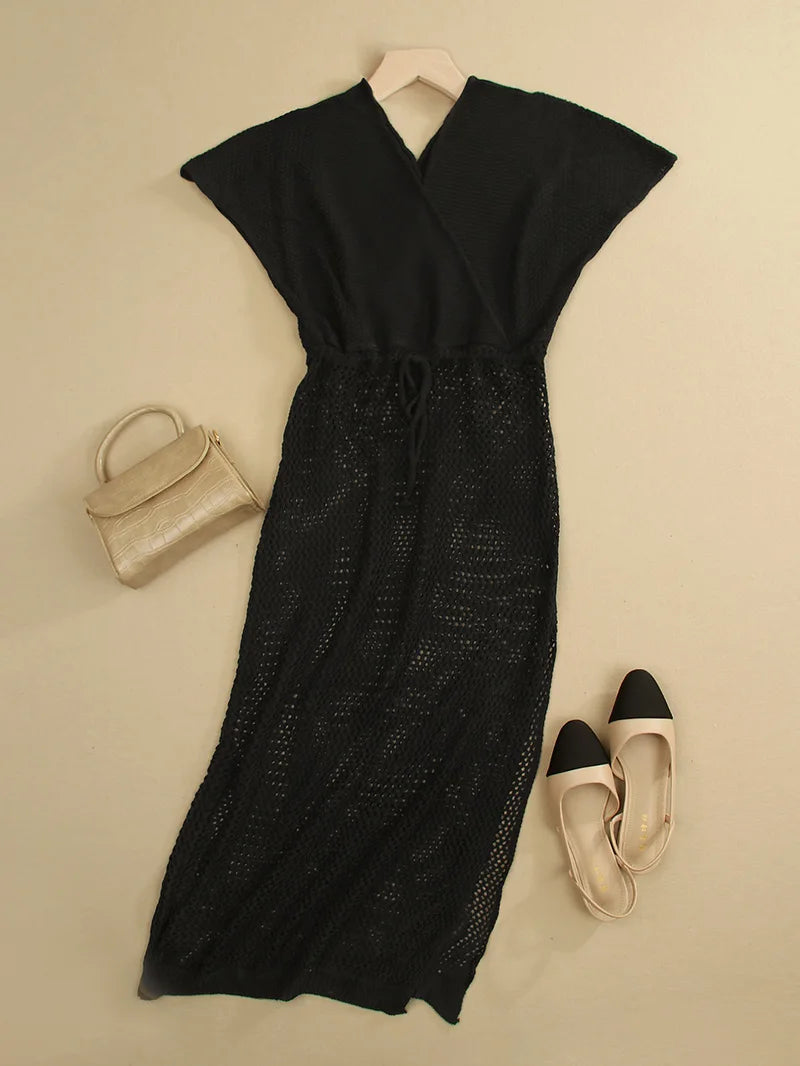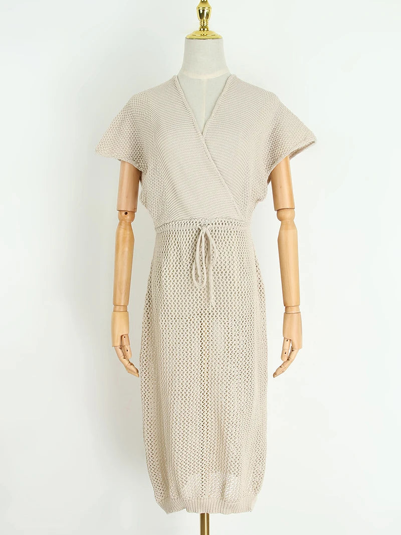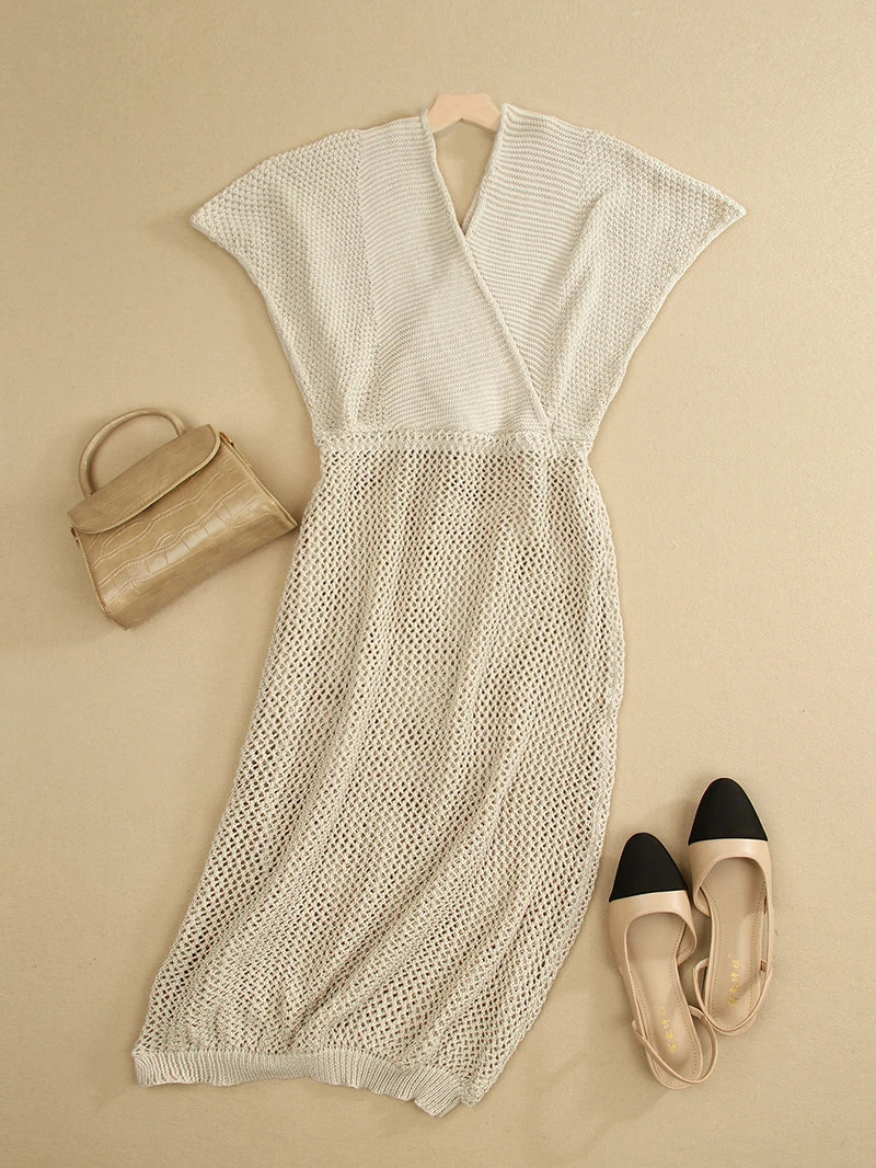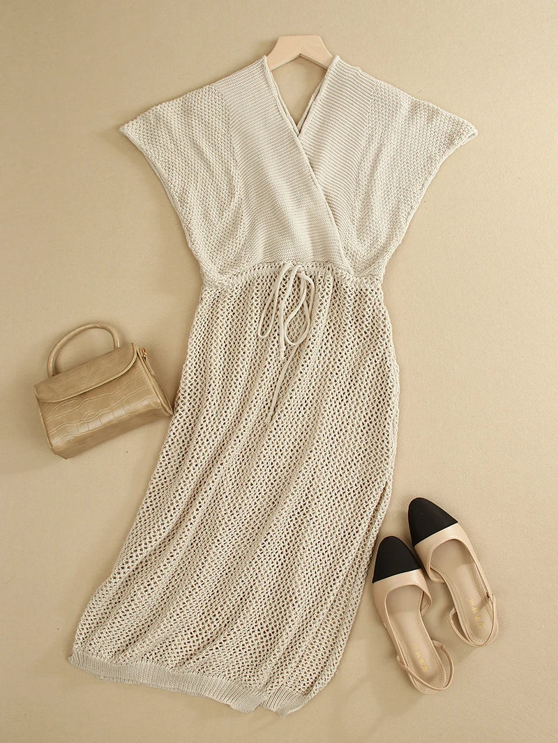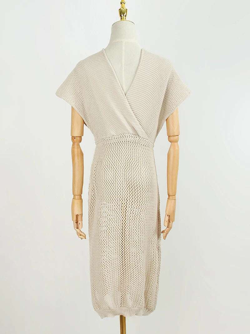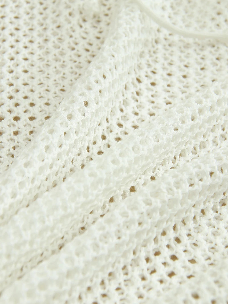 2024 White Crochet Tunic Bikini Cover-ups Sexy Hollow Out Long Dress V neck Women Summer Clothes Beach Wear Knitted Cover Up