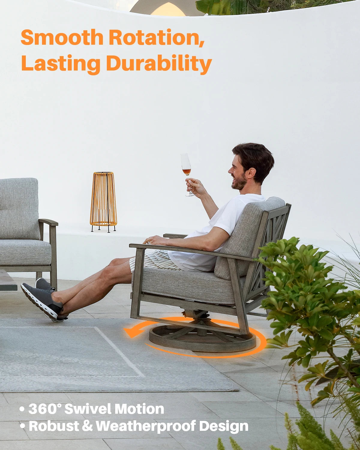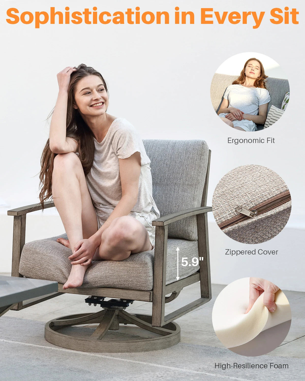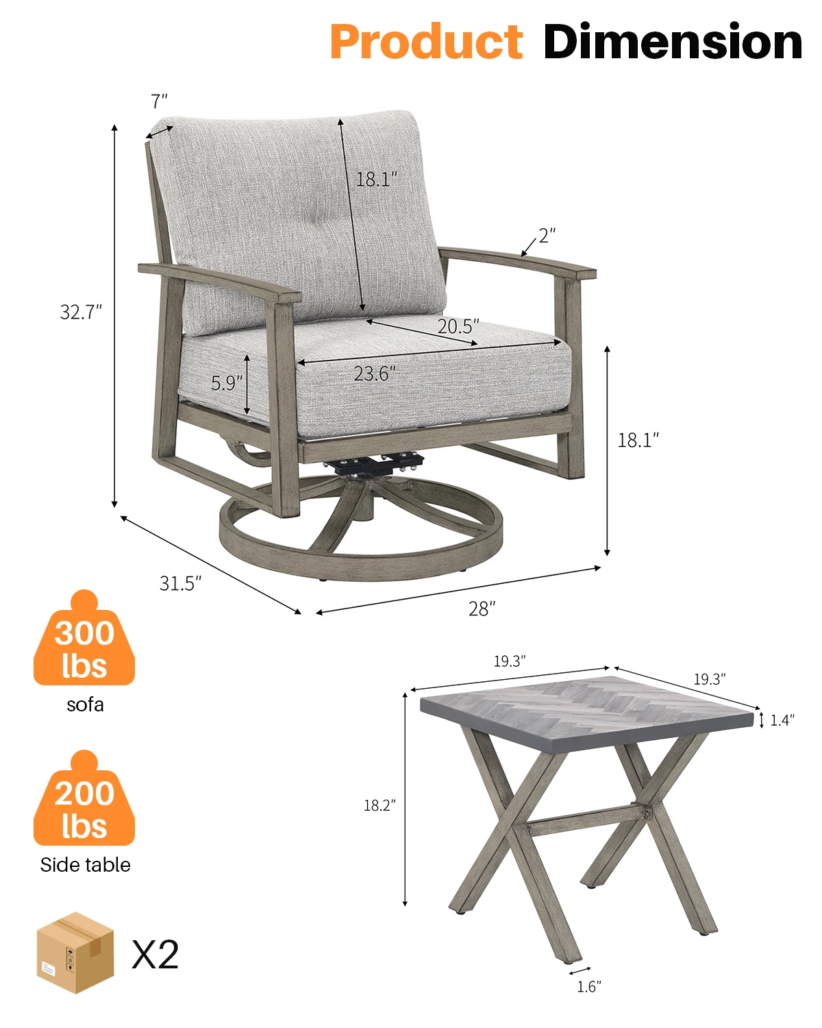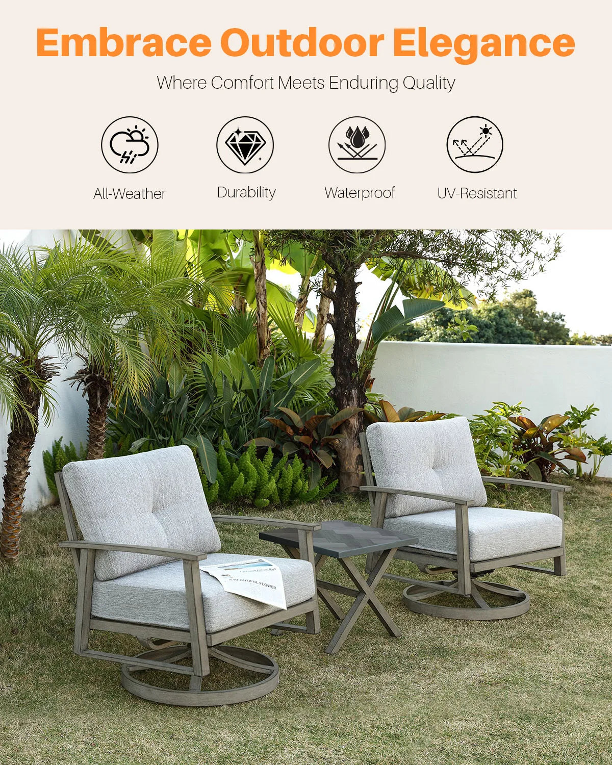 3-Piece 360° Swivel Lounge Set: Aluminum Sofa Chairs + Side Table - All-Weather Comfort for Balcony Dates & Garden Relaxation