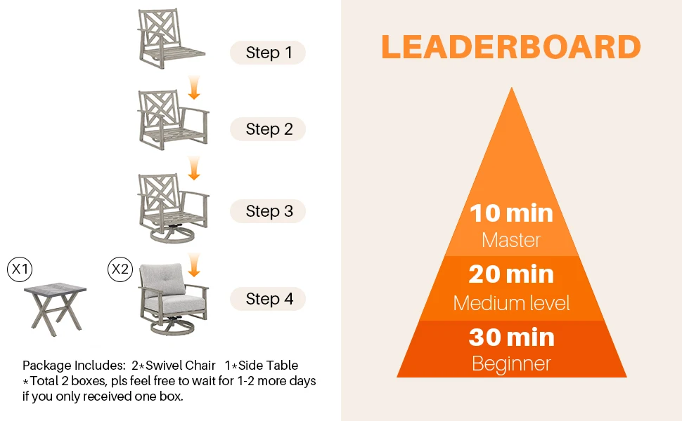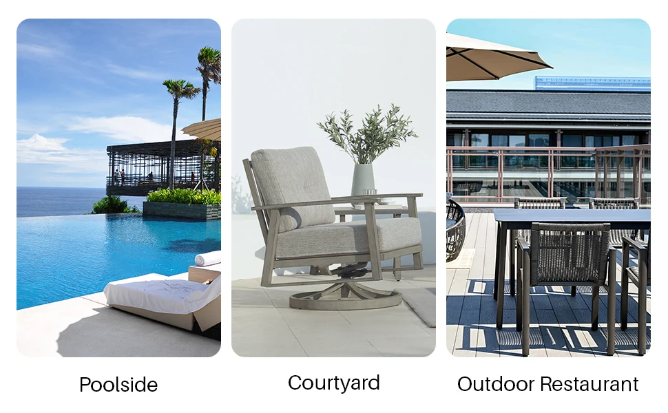 *Durable and Weather-Resistant Design: This Modern Leisure Swivel Rocking Chair Table Set Outdoor is built with a sturdy aluminum frame and UV-resistant material, ensuring it withstands various weather conditions and lasts for a long time, making it ideal for hotels, villas, and gardens. *Elegant Modern Design: Rocking Chairs Outdoor Garden Furniture features a sleek and modern design, perfect for adding a touch of sophistication to any outdoor space, whether it's a hotel, courtyard, or garden. *Comfortable and Spacious Seating: This garden set consists of multiple pieces, providing ample seating space for relaxation and leisure, allowing you to unwind in style and comfort. *Easy to Assemble and Maintain: This outdoor furniture set is designed for hassle-free assembly and maintenance, making it a convenient choice for homeowners and hoteliers alike.