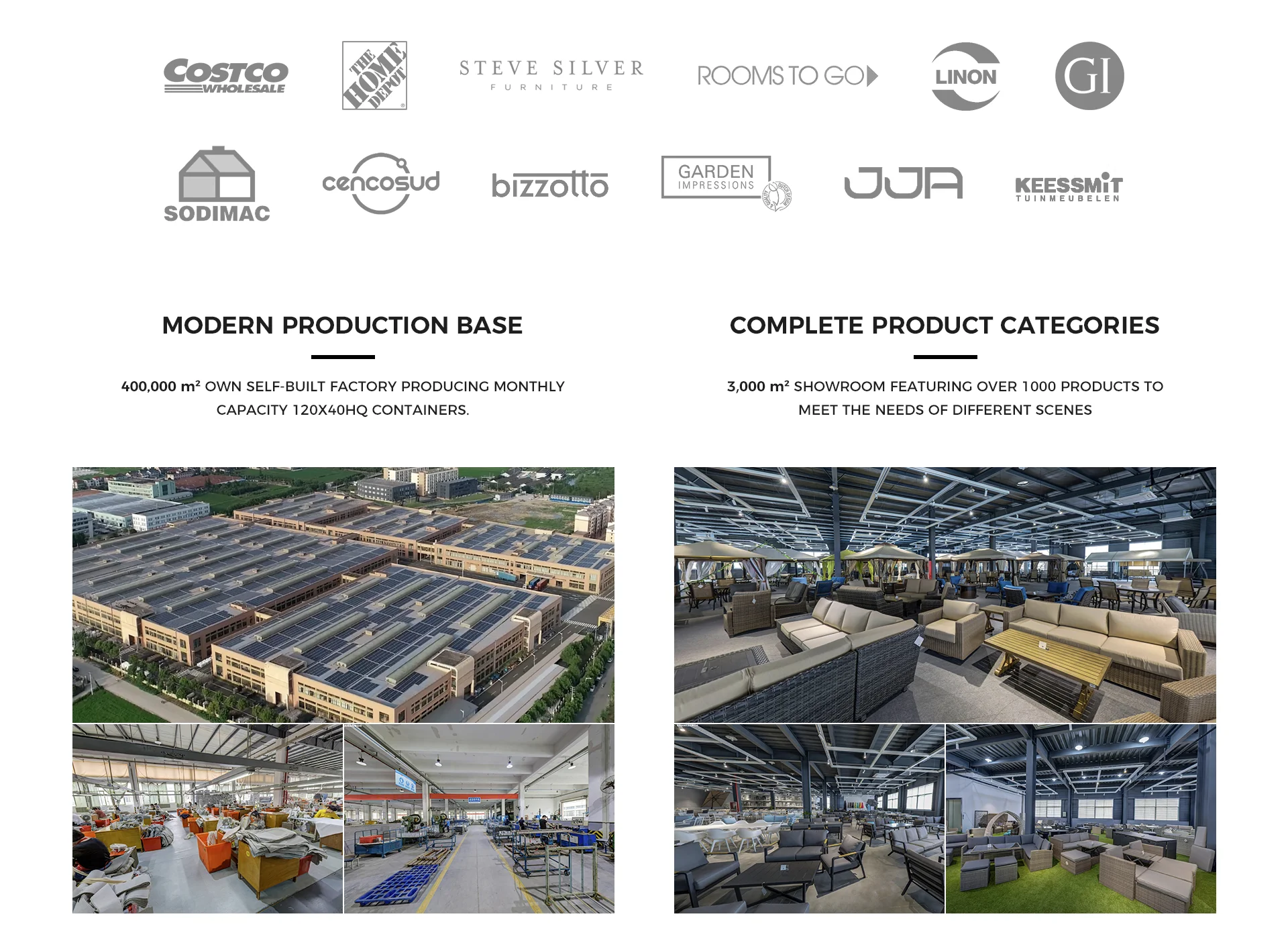 1.Multiple large in-house factories ensure large-scale supply capabilities and better cost; 2.With over 25 years of extensive export experience, we provide professional services; 3.A including Italian designers R&D team, better understanding of customers and products; 4.Equipped with an in-house laboratory and facilities, supported by a substantial quality control team, we ensure the stability and quality of our products; 5.The integration of traditional crafts (such as hand-woven rattan, hand-woven rope, and hand-painted) with fully automatic powder coating enhances the refinement and aesthetic appeal of our products;