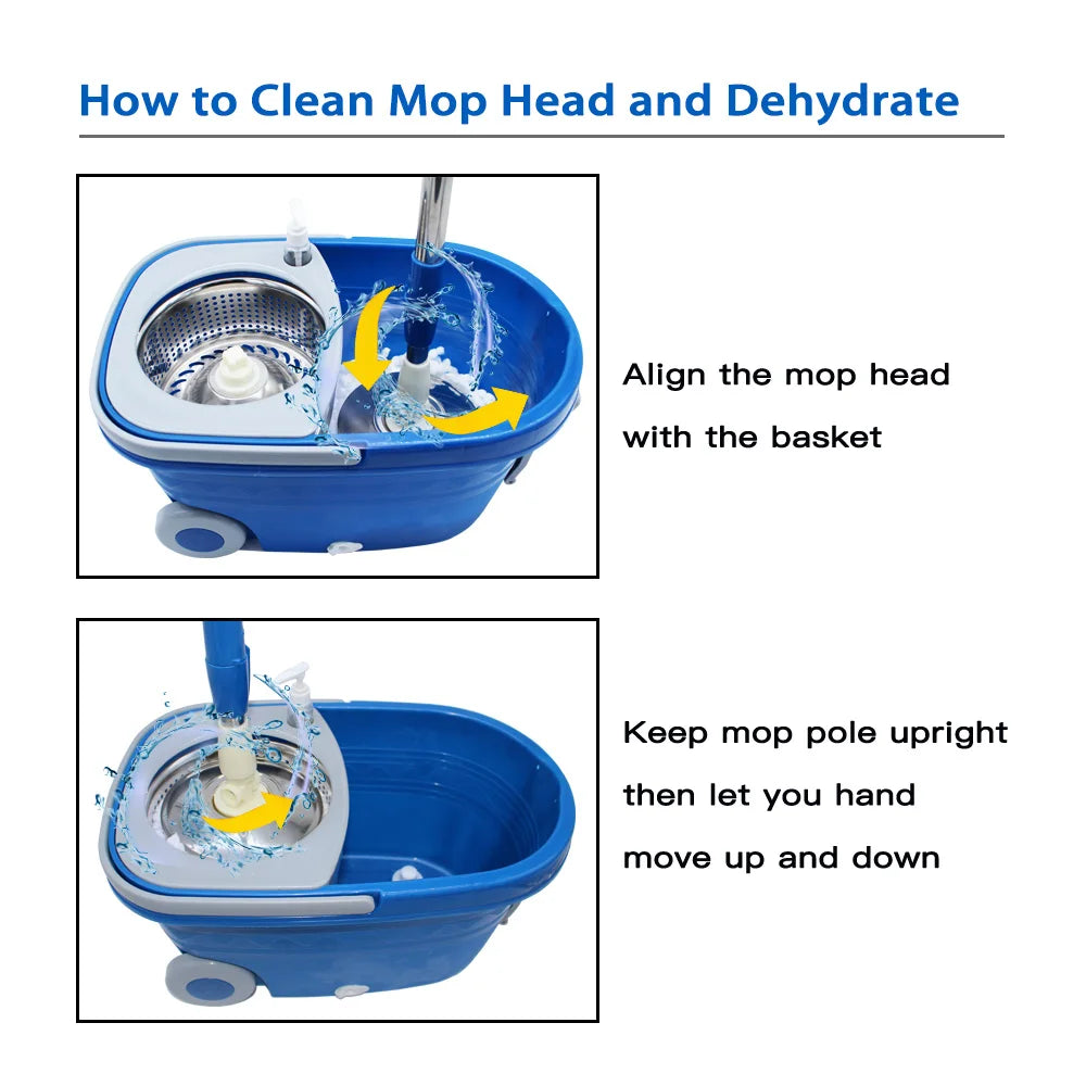 · HANDS-FREE Self-wring Spin Mop: Stainless steel wringerbasket rustproof and durable. Easy Wring bucket system clean and dry the dirty mop without need to touch it, makes the cleaning process a lot easier.