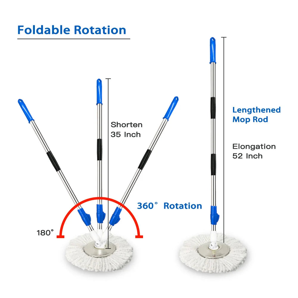 · Easy to Use & Move: The mop handle is extendable, 35 inches to 52 inches, suitable for anyone with any heights.This bucket system has two wheels located on the bottomand one handle, make sure the bucket can be easily transported from room to room with NO heavy lifting.
