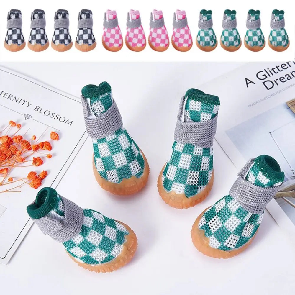 4pcs/set Breathable Breathable Pet Dog Shoes Wear-resistant Soft Hollow Dog Boots Anti-skid Sandwich Mesh Puppy Mesh Shoes