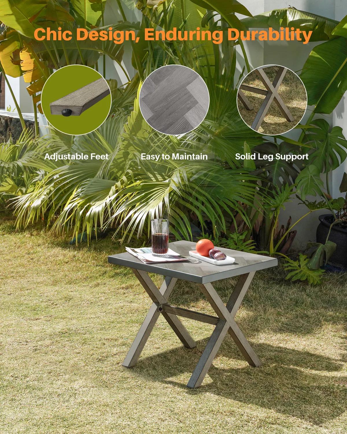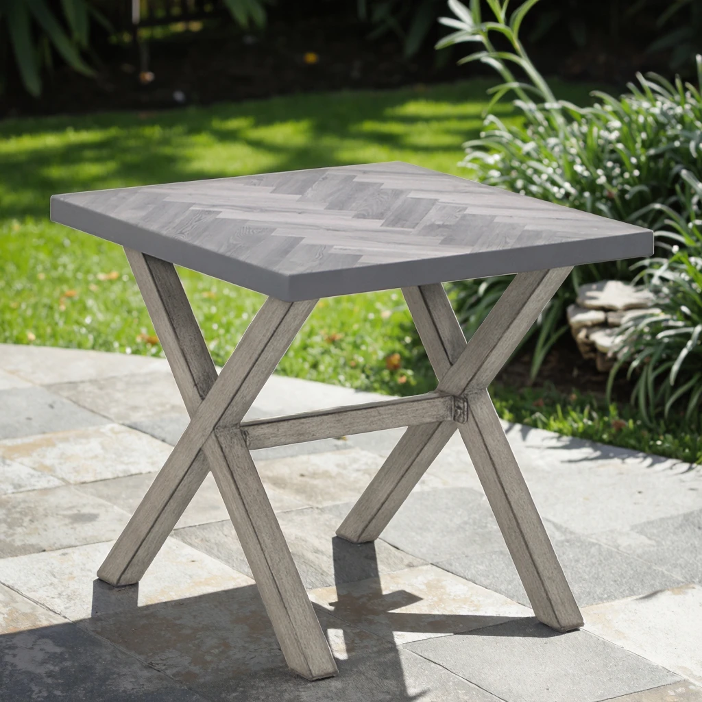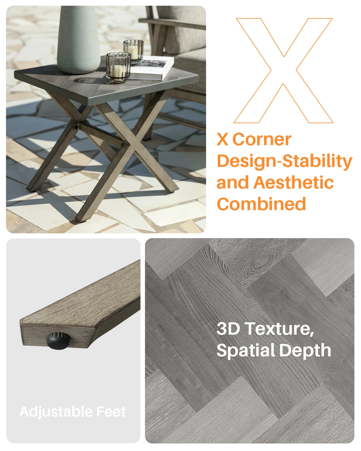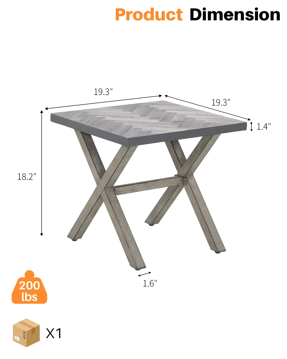 Chic Gray Square Side Table: 19.3''x19.3'' Resin Top & X-Frame Aluminum - All-Weather Accent for Coffee, Plants & Garden Sofas
