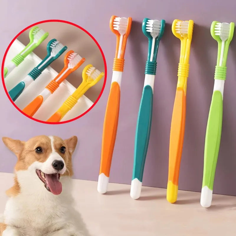 Dog Toothbrush Three Sided Pet Toothbrush Dog Teeth Cleaning Soft Hair Teeth Brush for Dogs Cat Mouth Cleaning Pet Products