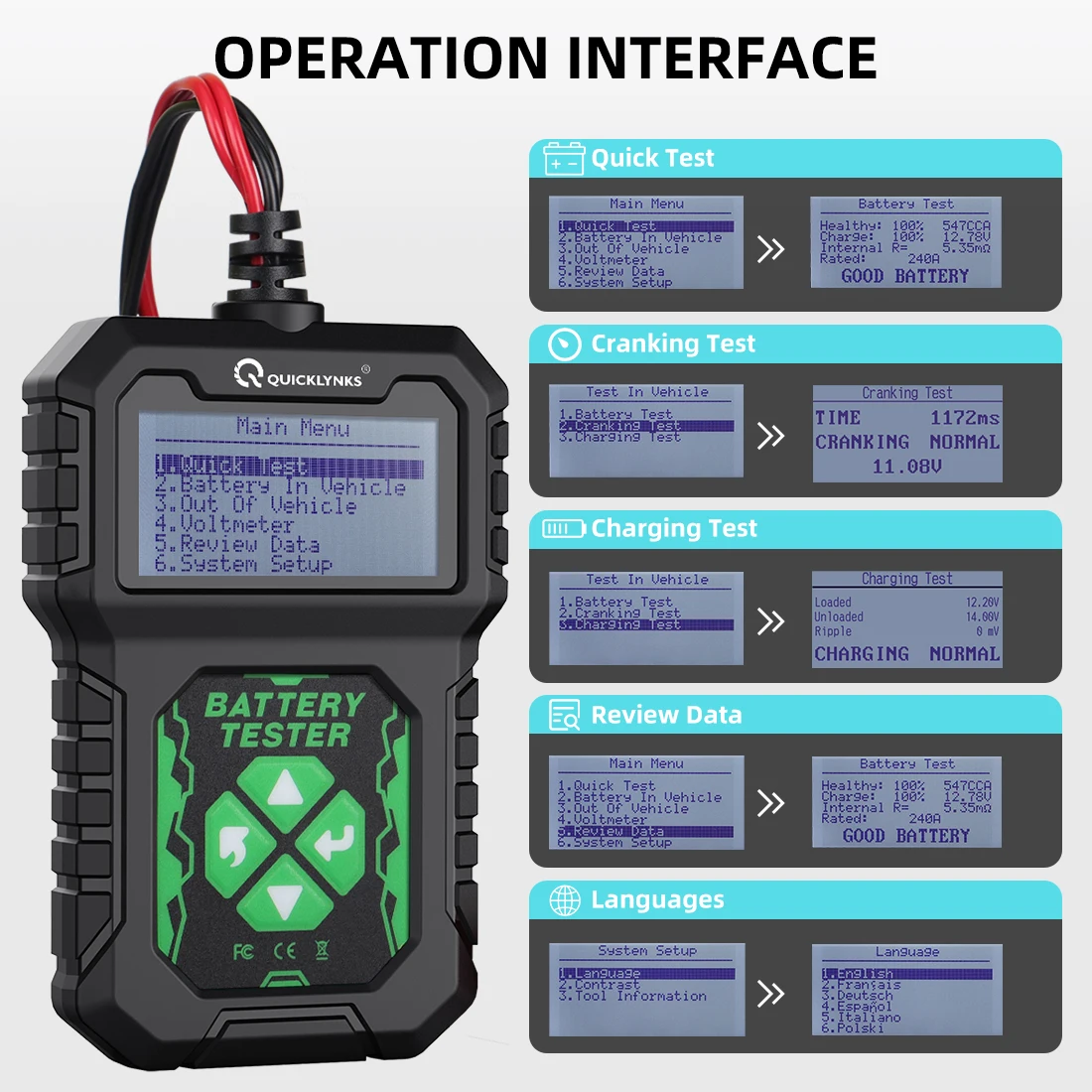 ✔Test the battery CCA and the state of health.