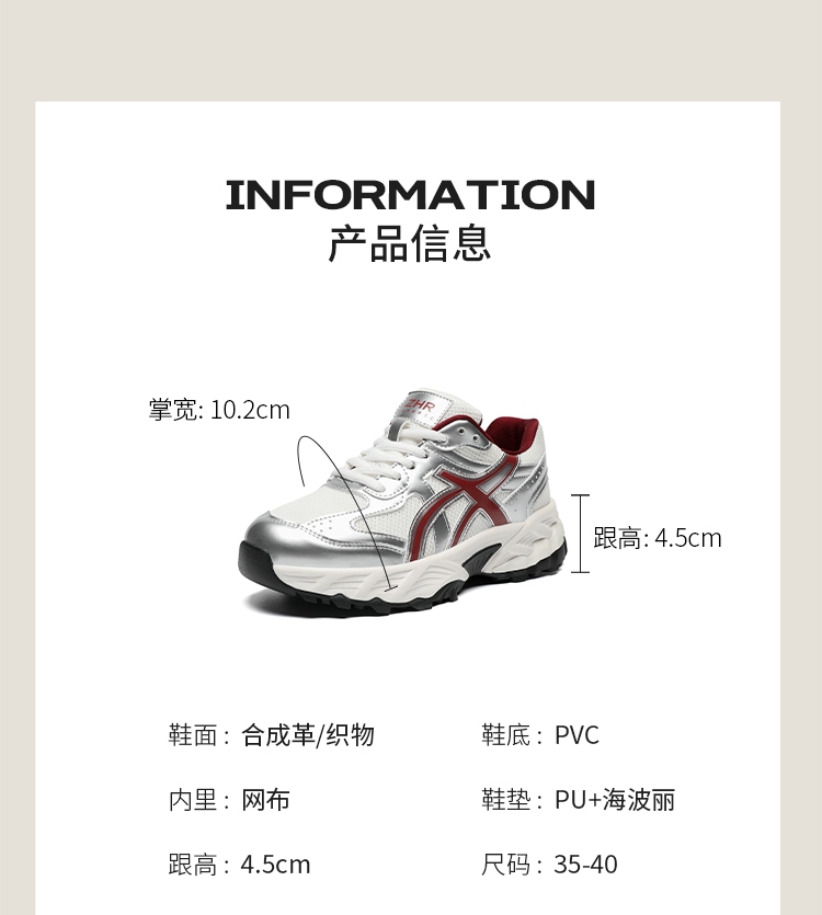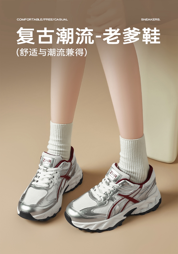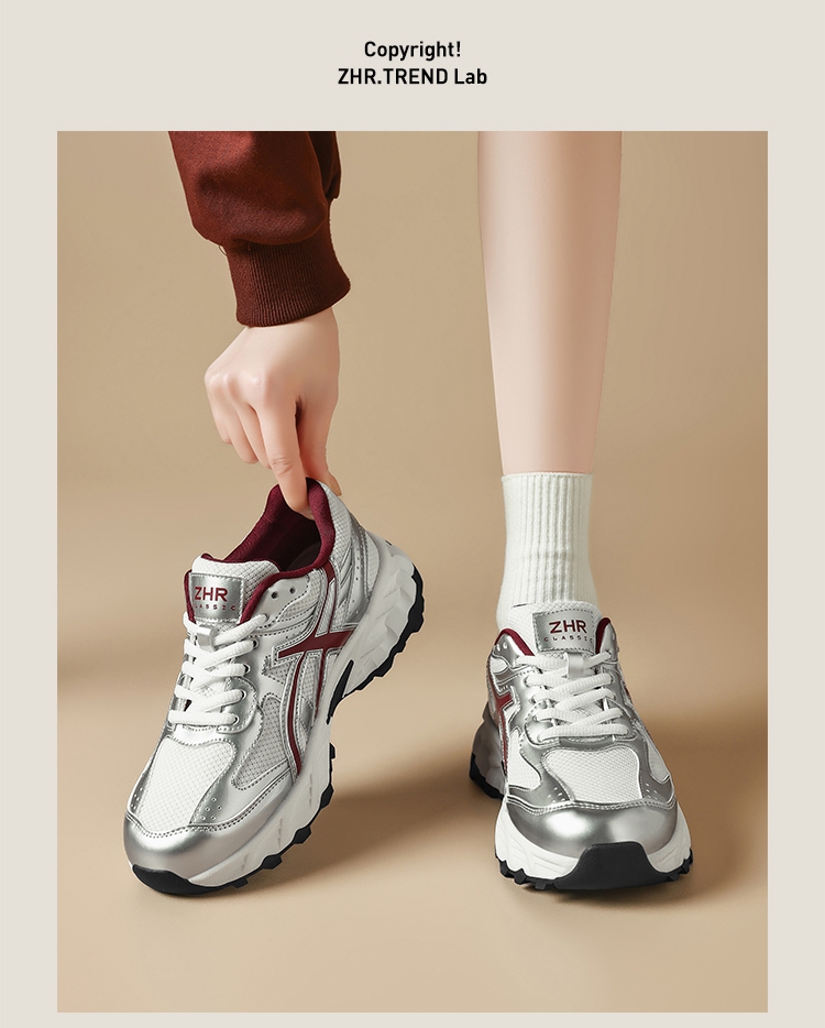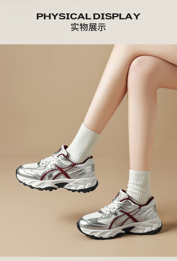 Silver Dad Shoes Women 2025 Spring New Small Thick Sole Height Increasing Casual Shoes Lightweight Show Feet Small Sneaker