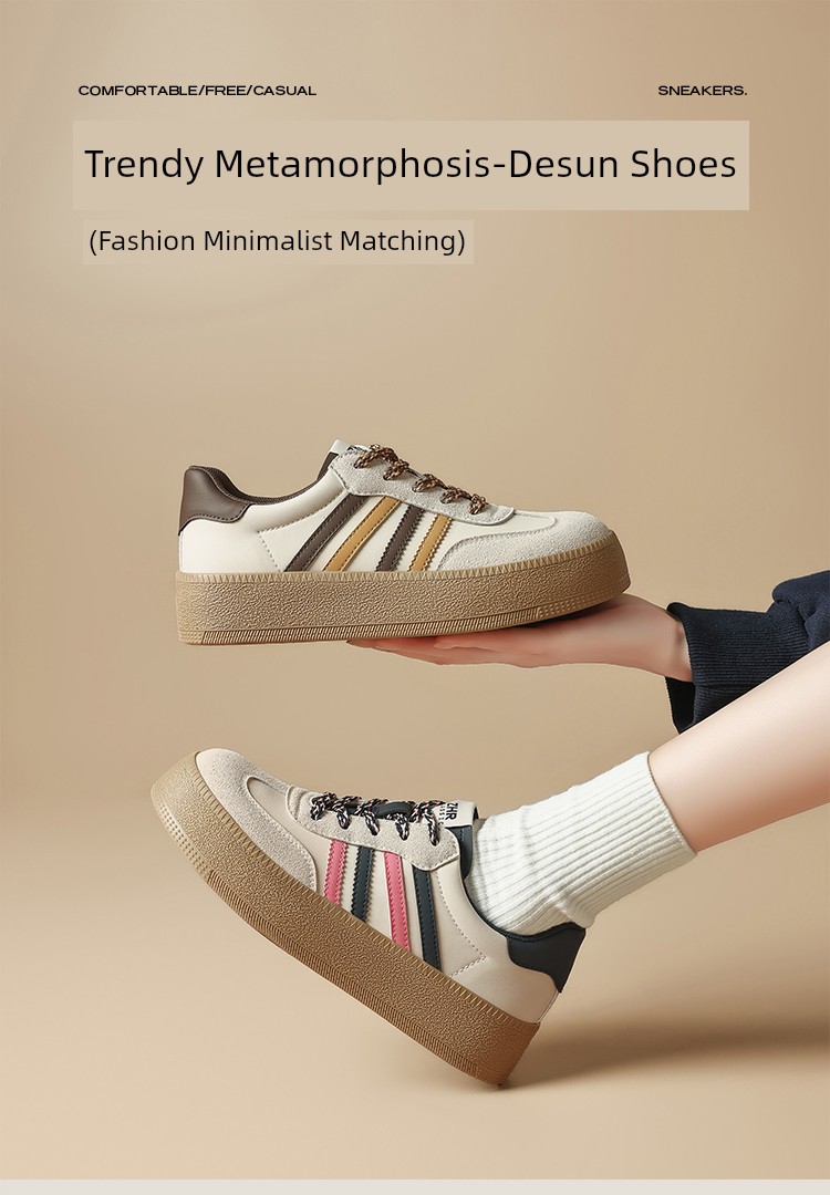 Thick-Soled German Training Shoes Women 2025 Spring New Versatile Lightweight Sports Casual Sneakers Retro Height Increasing Argan White Shoes