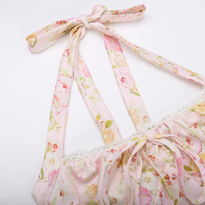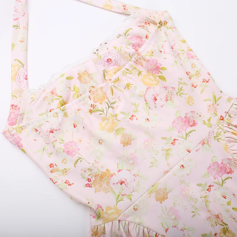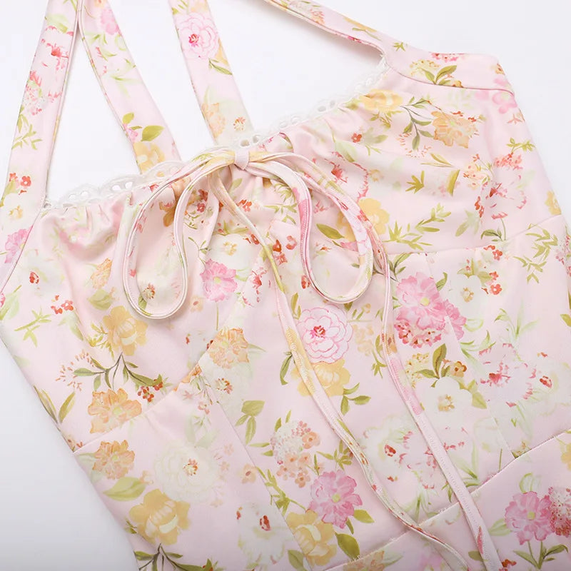 Townlike Waist Wrap Print A-line Elegant Midi Long Dress Women Halter 2024 Spring Summer Dress Backless Sexy Party Dresses