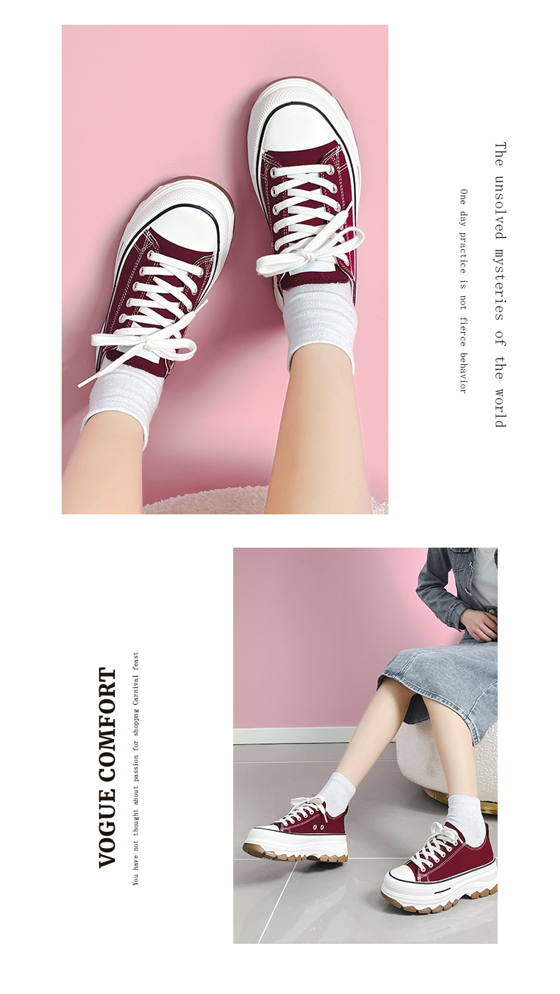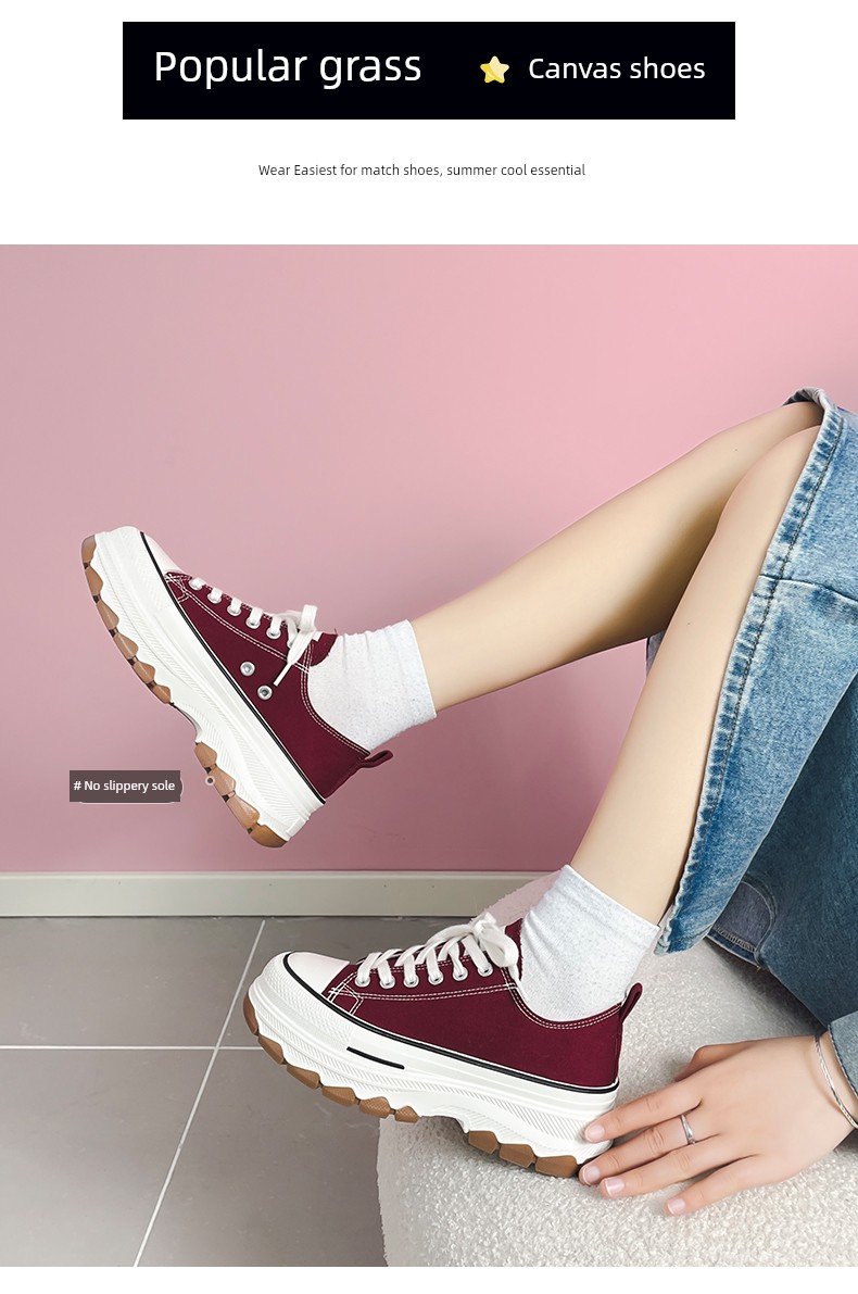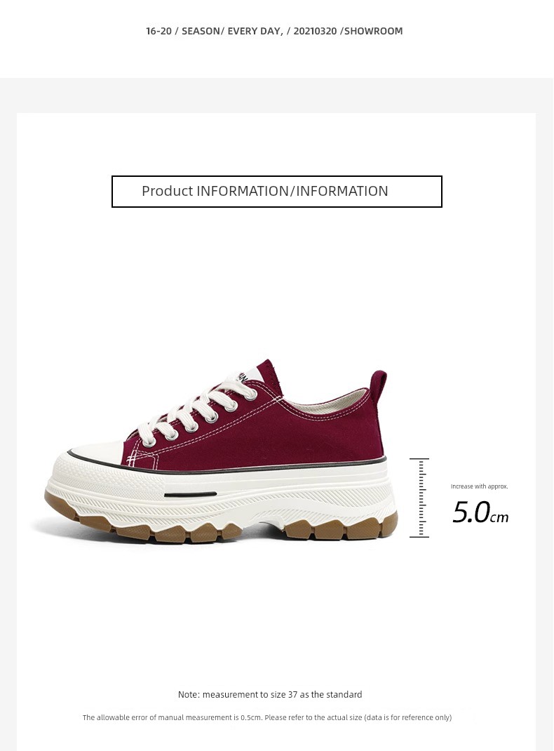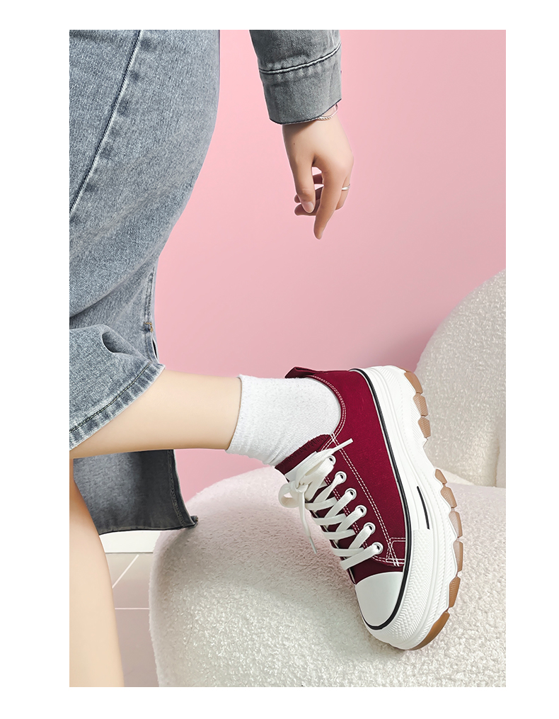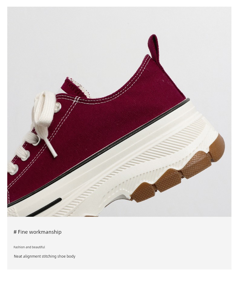 Universal Wine Red Autumn Height Increasing Casual Canvas Shoes