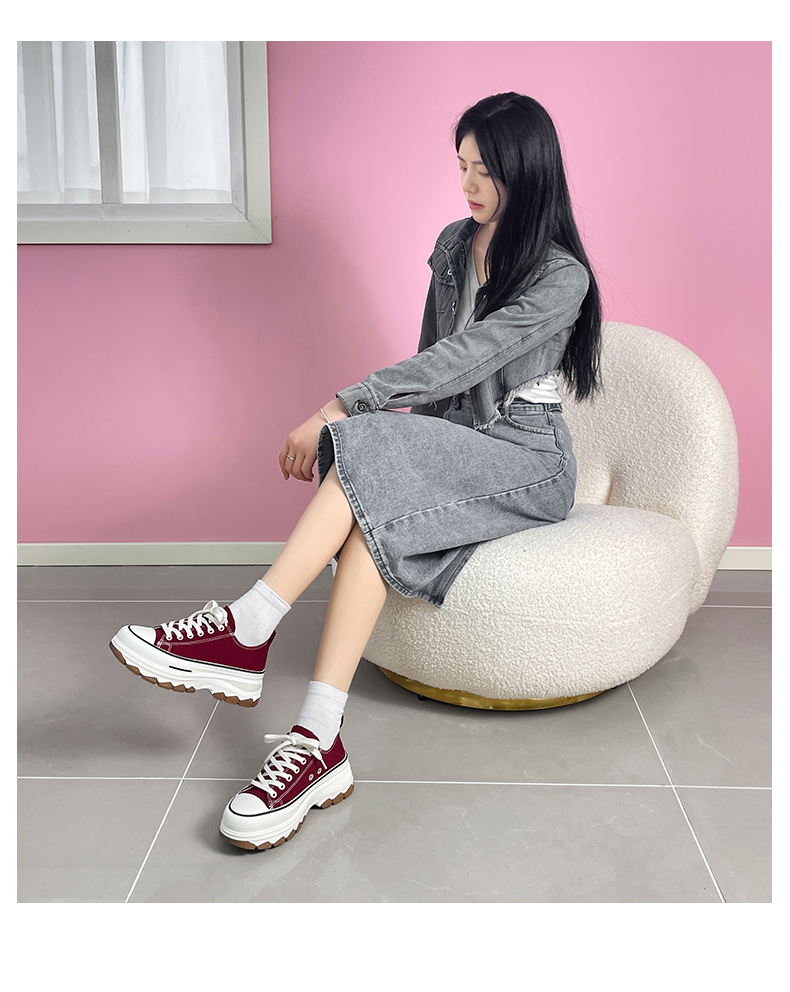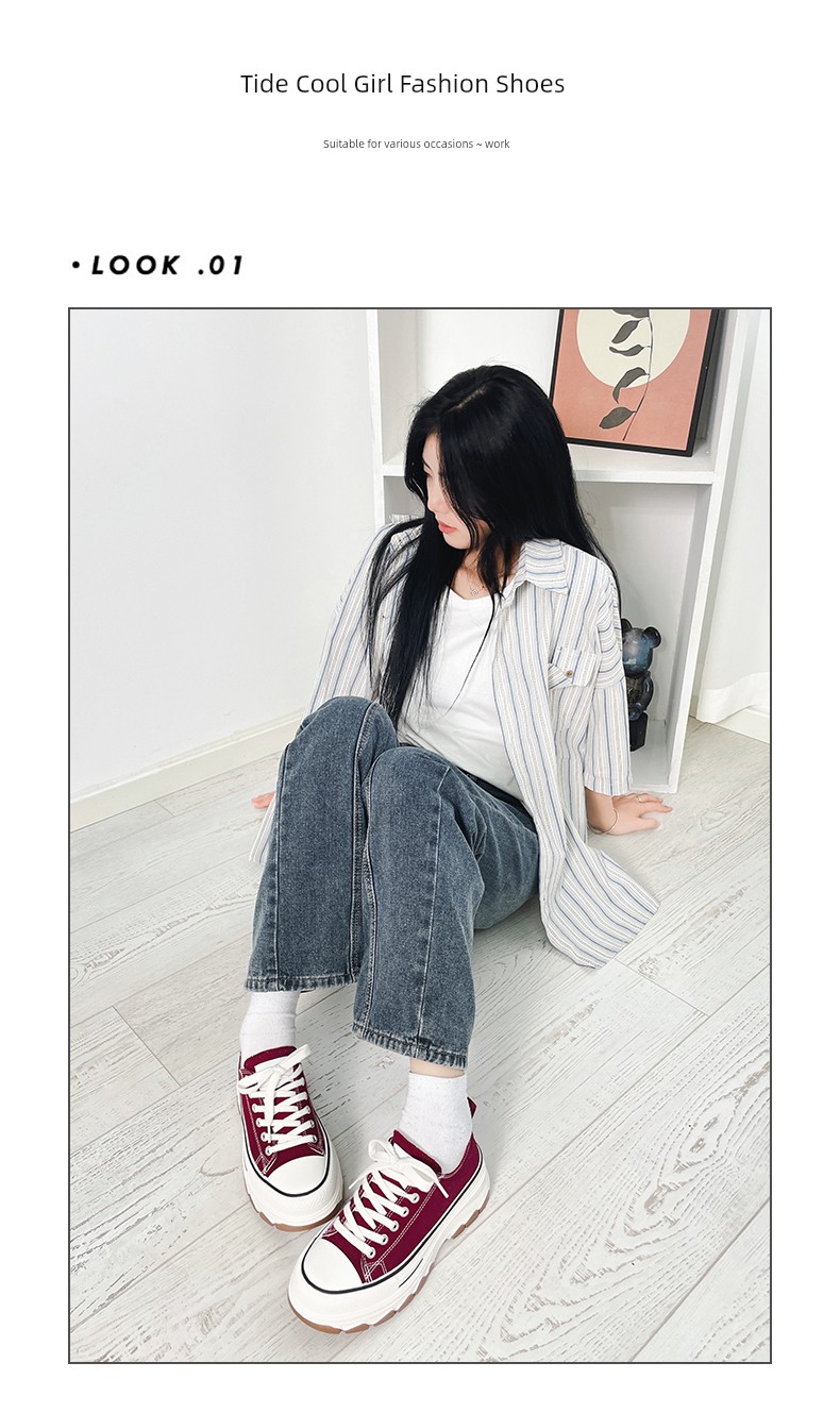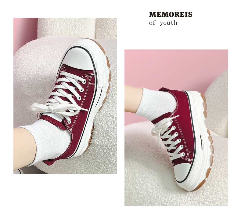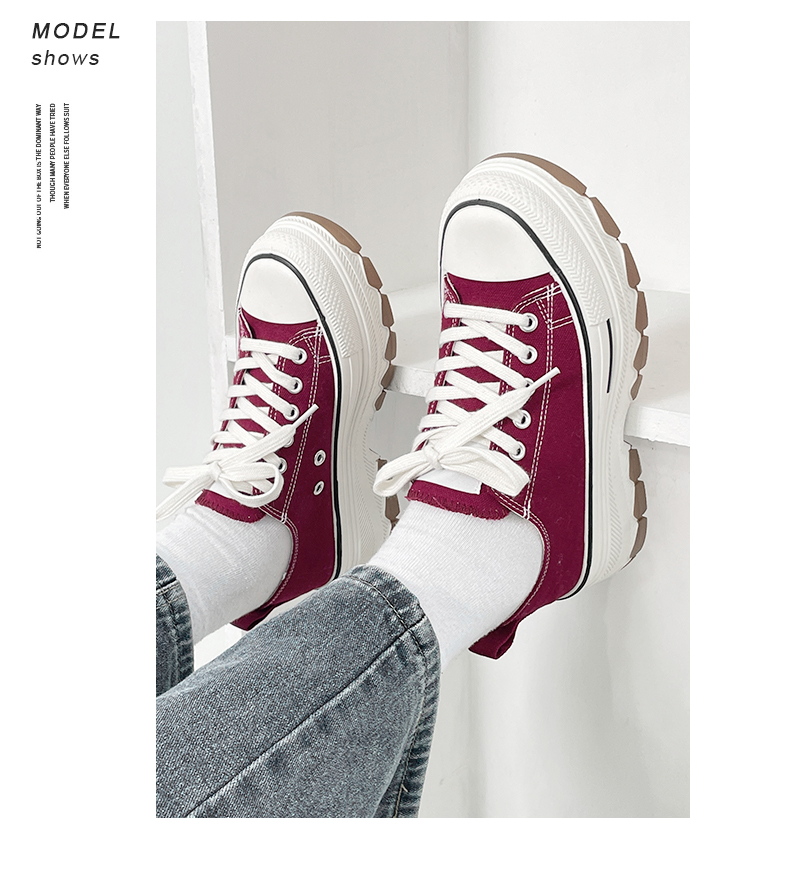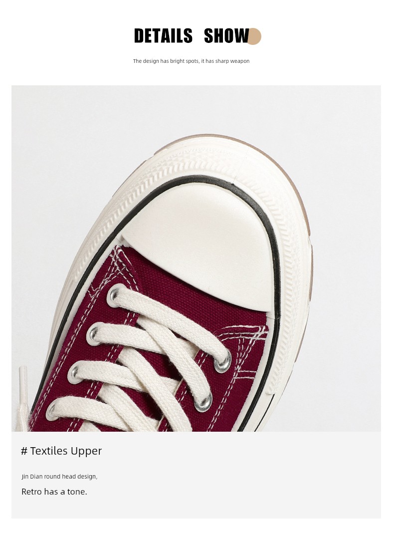 Universal Wine Red Autumn Height Increasing Casual Canvas Shoes