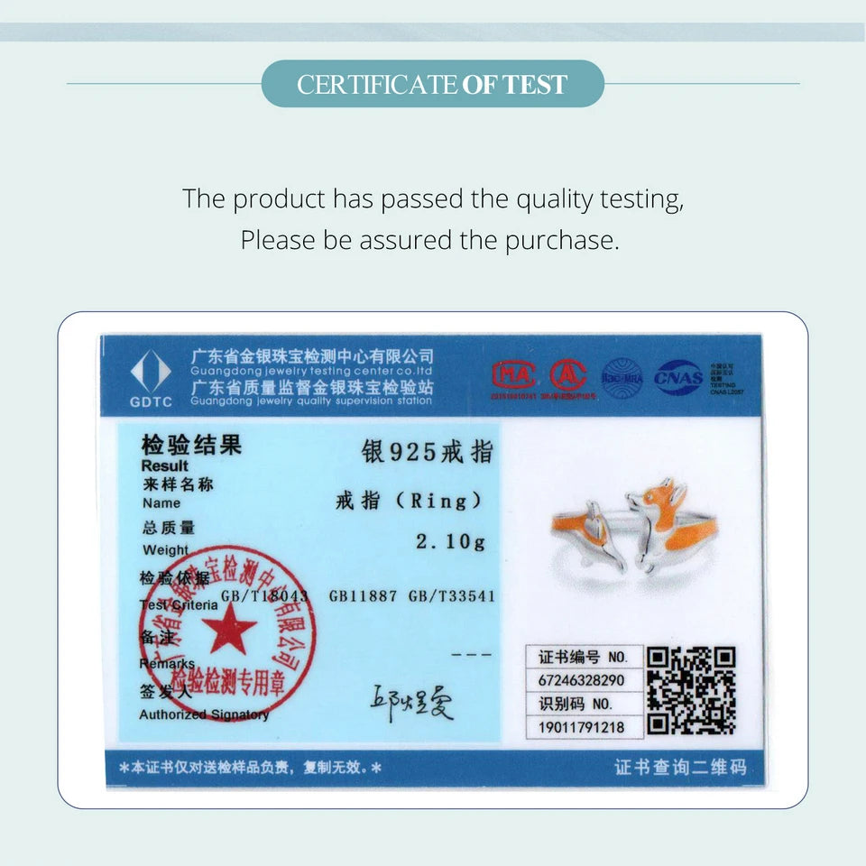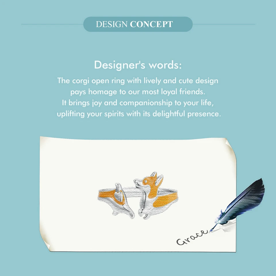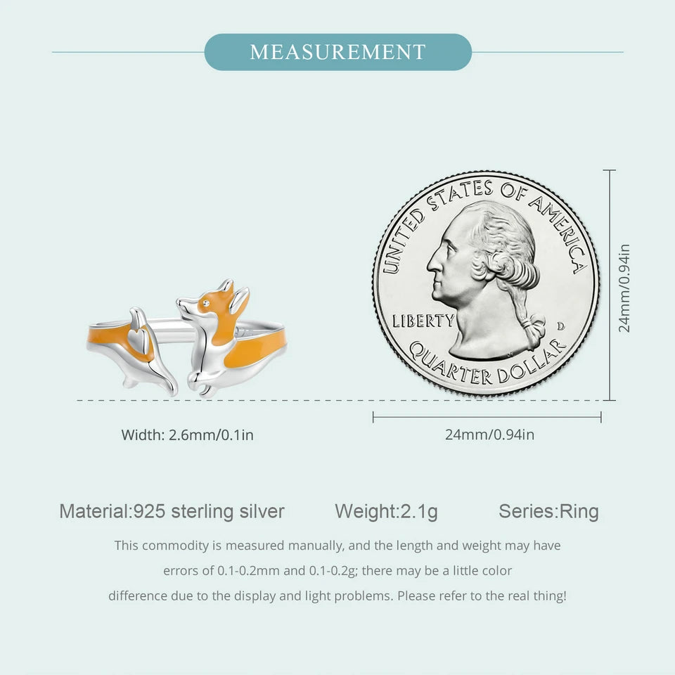 Certificate Number: WOSTU 925 Sterling Silver Cute Yellow Corgi Dog Pet Opening Ring