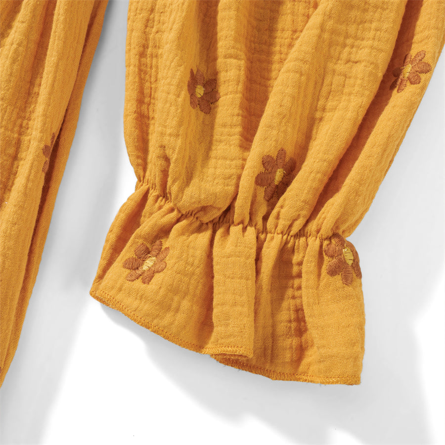 wsevypo Retro Embroidered Flowers Flowy Long Dress Women's Long Puff Sleeve Square Neck Smocked A-Line Dress for Beach Vacation
