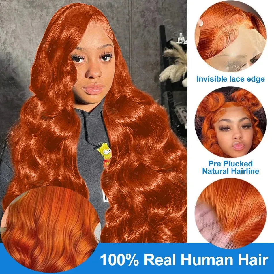 YKB 30 32 Inch Ginger Lace Front Wig Human Hair Body Wave 13x6 HD Lace Frontal Wigs 350 Orange Colored Brazilian Remy For Women