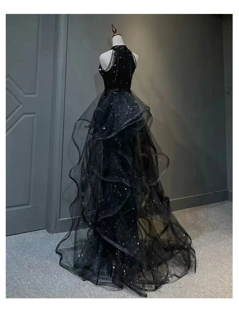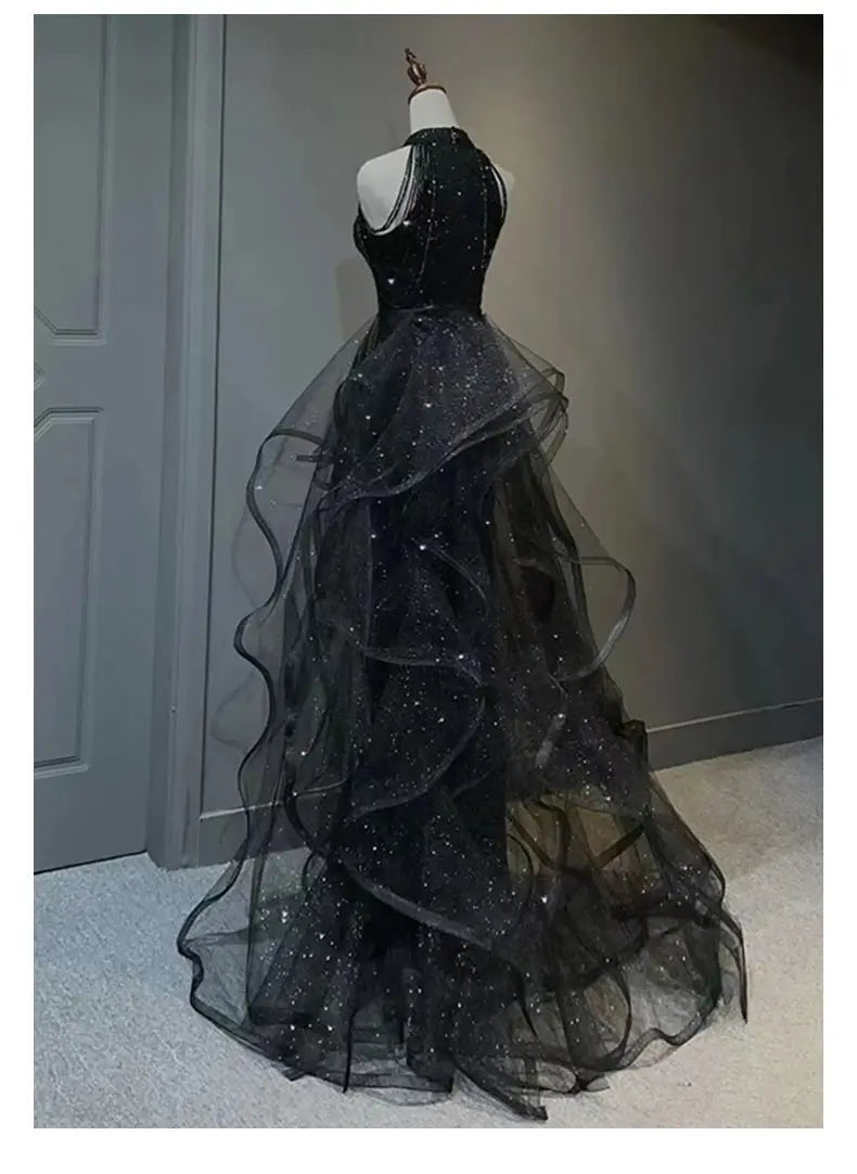 YOSIMI Women Evening Party Long Dress 2023 Summer Vintage Mesh Floor-Length Sleeveless Black Dress Trumpet Sexy Mermaid Vestido